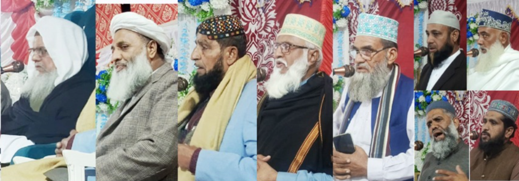 ۔قران مجید کی تیس آیات میں عقیدہ ختم نبوت کا ذکر سرعت سے دلالت کرتا ہے۔قیامت قائم ہوگی مگر خاتم الانبیاء کے بعد کوئی نبی نہیں آئے گا۔پاکستان میں قوانین میں ترامیم کے لیے بھی کوششیں جاری ہیں۔مگر ہم عقیدہ ختم نبوت کے لیے متحد ہیں۔انتظامیہ بھی مسلمان ہے اور محبت کرنے والی ہے۔لہذا اگر کسی جگہ کوئی معاملہ بنتا ہے تو فہم و فراست سے کام لیا جائے انتظامیہ سے مذاکرات کریں اور مل کر حل نکالیں۔موجودہ دور میں اہلسنت کو بری طرح کچلا جا رہا ہے اور اہلسنت نے پاکستان بنایا بھی تھا اور بچانے کے لیے ہر جگہ حاضر ہیں۔پاکستان ہمارا ہے فوج ہماری ہے اور ہم سب اپنے ملک کے ساتھ ہیں۔