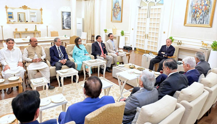 چیئرمین پیپلز پارٹی بلاول بھٹو زرداری نے وفد کے ہمراہ وزیراعظم ہاؤس میں وزیراعظم شہباز شریف سے ملاقات کی۔